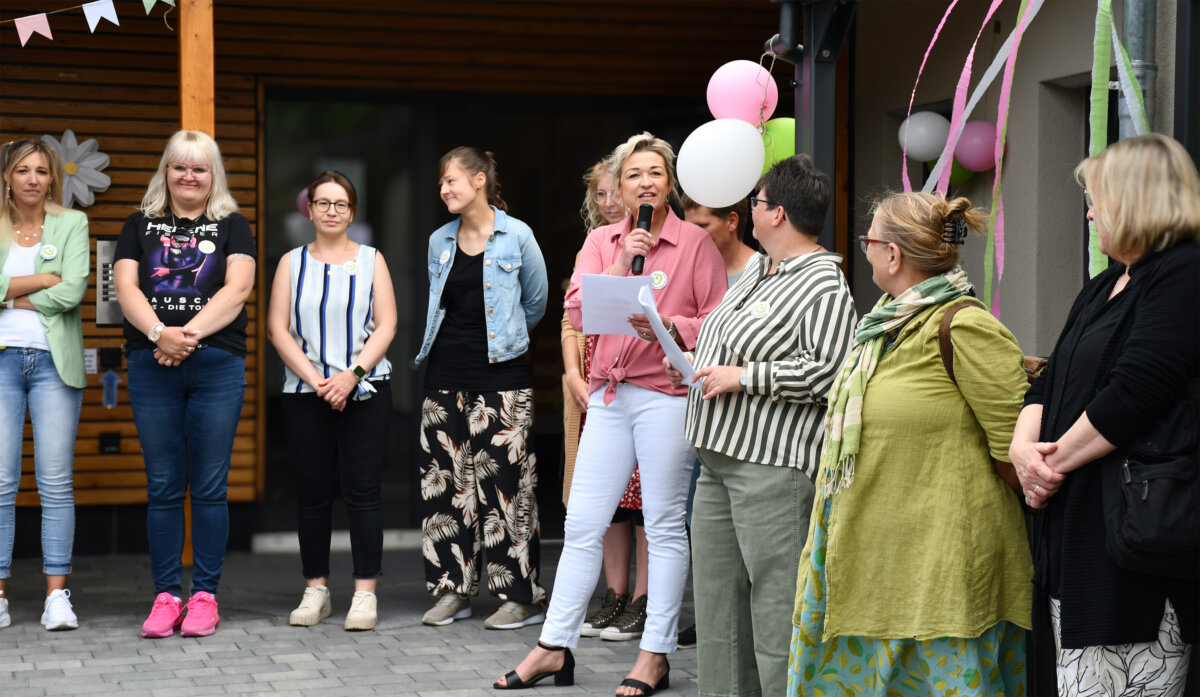 Kita-Leiterin Alexandra Grimm begrüßte die Gäste mit bewegenden Worten: „Heute ist nicht nur ein Tag der offenen Türen, sondern auch ein Tag der Dankbarkeit. Das Vorhaben, eine schöne Kita zu bauen, war Teamarbeit im besten Sinne.“ Gemeinsam mit ihrem Team sprach sie in einer charmanten „Dankes-Staffel“, bei der jede Mitarbeiterin einen ihr wichtigen Aspekt nannte, ihren tief empfundenen Dank aus – für Flexibilität, Ausdauer, Mut, Kompetenz, liebevolle Gestaltung und ganz besonders für das neu geschaffene Arbeitsumfeld: „Danke, dass wir nicht mehr im Container sein müssen“, hieß es unter Applaus und mit Blick auf das Ausweichquartier während der Sanierungszeit.