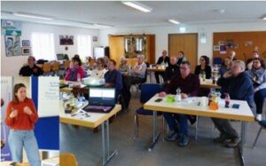 Den Auftakt machte jüngst der erste Workshop in der „Brandsburg“ von Alten Buseck. Die dabei anwesenden 20 Vertretungen heimischer Gesangvereine waren selbst erstaunt, welch kreative und interessante Projekte mancher Chor in der Nachbarschaft bereits erprobt und durchgeführt hatte. Immer mit dem Ziel, „Mitglieder gewinnen, einbinden und aktivieren“. Der Moderatorin und Workshopleiterin Alexandra Böckel, Geschäftsführerin des Freiwilligenzentrum Gießen, gelang es dabei schnell eine vertrauensvolle und offene Teamatmosphäre zu erzeugen, in der auch sie neue Anregungen, Machbarkeit und Impulse den Teilnehmern einbringen konnte. Für die künftige Kooperation und Weiterentwicklung neuer Ideen wurde bereits eine digitale Pinnwand eingerichtet.
