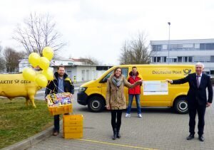 Zum wiederholten Male hat die Belegschaft der Deutschen Post in der Niederlassung Langgöns eine Spendenaktion gestartet bei der jetzt stolze 2700 € zusammengekommen sind. Bunt dekoriert mit Luftballons und verpackt mit Süßigkeiten hat der stellvertretende Niederlassungsleiter Christoph Kohl mit seinen Mitarbeitern Stefan Hausburg und Ingo Hofmann den Scheck an Pamela Stephens vom ambulanten Kinder- und Jugendhospizdienst Gießen/Marburg überreicht. Mit dieser bereits zweiten Spende an den Hospizdienst in der zwölfmonatigen Pandemiezeit, möchten Christoph Kohl mit seiner Postbelegschaft auch ihre hohe Wertschätzung den in diesem Dienst tätigen Menschen entgegenbringen.