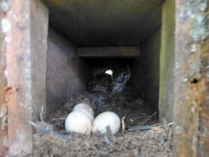 Unsere Mitglieder Volker und Johannes Jung haben dieses Jahr die Röhren kontrolliert, wieder ein sehr gutes Ergebnis. Zuerst haben sie die kontrolliert, die noch in einem guten Zustand waren. Bei 31 Röhren befanden sich 14 Altvögel in den Kästen. Weitere 5 Röhren wurden repariert, Dach erneuert, Aufhängung instand gesetzt. Am 29. März haben wir noch 4 neue Röhren aufgehängt, jetzt haben wir 40 Röhren, zurzeit reicht es jetzt. In den letzten Jahren konnten wir so zwischen 7 und 9 Bruten zählen, 21 bis 27 Jungvögel kamen durch. Somit haben wir eine der größten Populationen in Hessen.