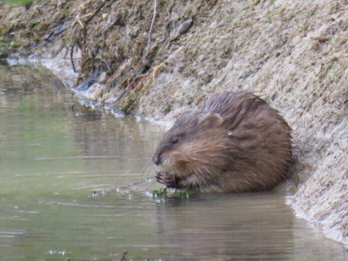 Der alte Beitrag darüber: Bei der gestrigen Kontrolle von einem Flut-graben stellte ich fest, in dem verbliebenen Wasserrest hat sich eine Familie der Bisamratte breitgemacht. Aufgrund der Trockenheit ist nur noch ein viertel der Wasserfläche vorhanden! Beim Beobachten der restlichen Wasserfläche stellte ich fest, es sind dort Bisamratten tätig. Sie hatten dort ihren Bau und durch die vorhandenen Wasserpflanzen genügend Futter.