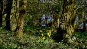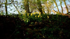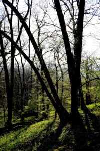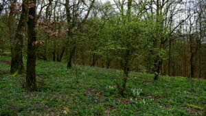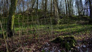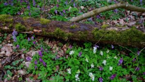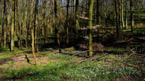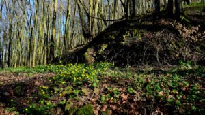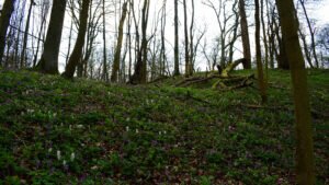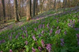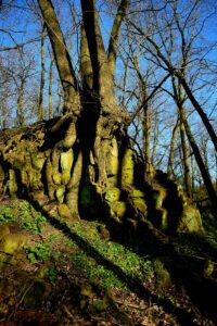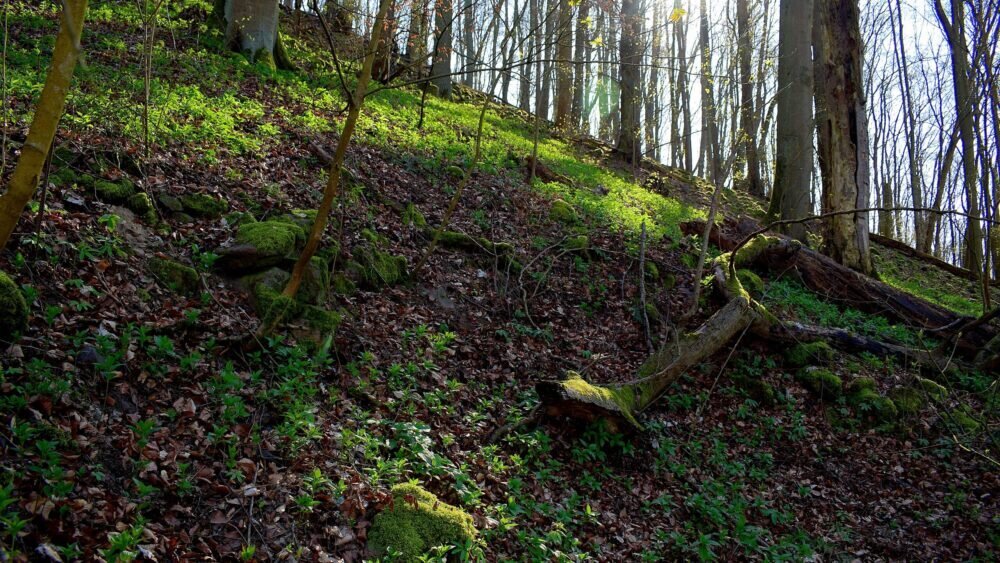 Die Tagestour möchte ich nun weiter erzählen: Ich machte einen Rundweg, der ziemlich ansteigend, über den Höhenrücken des Hangelsteins (305 Meter) führte. Unterhalb der Kuppe auf den Schrägflächen, blühen im Frühjahr in dem lichten Waldgebiet, derzeit, der Finger- und Hohle Lerchensporn mit ihren weißen und rosa Blüten, sowie weitere farbenprächtige seltene Pflanzen. Ein wahrer Blütenteppich der Natur ist zu bewundern, den man sich auf keinen Fall entgehen lassen `darf`. Nach einem Steig schlängelte sich der Weg an oft gesäumten Steinmännchen, die von `fleißigen Künstlern´ auf Bruchholz aufgebaut wurden, wieder zurück zum Ausgangspunkt, dem Waldparkplatz.