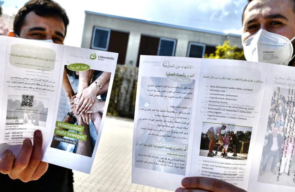 Pohlheim/Giessen (-). Über 60 junge Menschen im Alter von 16 bis 26 Jahren absolvieren jährlich ihr Freiwilliges Soziales Jahr (FSJ) bei der Lebenshilfe Gießen und ihren Tochterunternehmen. Dass das FSJ möglichst viele Personen ansprechen möchte und dass man in dieser Hinsicht keine Mühen scheut, unterstreicht das gemeinnützige Unternehmen nun mit der Veröffentlichung eines FSJ-Info-Flyers in arabischer Sprache.