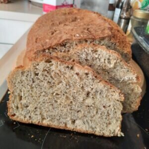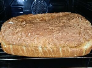 6.Gleich nach dem Backen aus der Form lösen u.das Backpapier abziehen,da das Brot