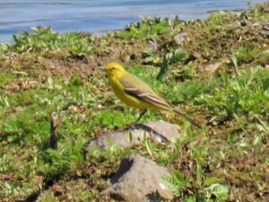 Einige Vogelstimmen mehr konnte ich dort hören und registrieren, den Zaunkönig, die Mönchs- und Dorngrasmücke, den Turmfalken, verschiedene Wasservögel und die Sperlinge. Die Nachtigall war zu diesem Zeitpunkt sehr aktiv mit ihrem schönen Gesang in den Büschen am Weiher. Nachdem ich dann an den anderen Bereich des Weihers zog, konnte ich dort eine seltene englische Schafstelzenart sehen und auch mit der Kamera festhalten! Ganz aufgeregt versuchte der Spezialist Prof. Dr. Martin Kraft zum Nachweis, sie ins Bild zu bekommen. Es war englische Art der Gelbkopf-Schafstelze welche dort am Wasser auf Futtersuche war!