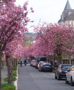 Das ist auch ein Thema in der heutigen Ausgabe der Oberhessischen Presse, über diese Zierkirschen-Blüte in der Stresemannstraße im Südviertel von Marburg!