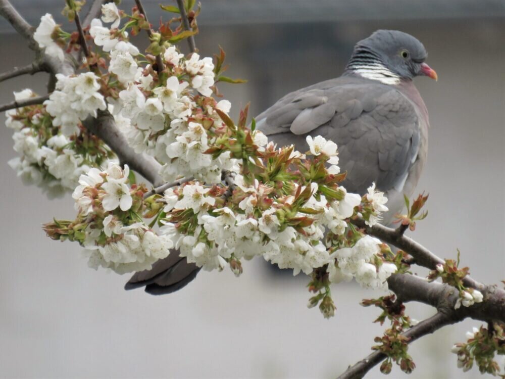 Trotz frostigen Temperaturen der letzten Zeit, ist die Kirschblüte bei uns auch gut rausgekommen, passent dazu eine Ringeltaube als Schnappschuss! Diese Ringeltauben sind in diesem Frühjahr sehr aktiv, bei uns in den Gartenbereichen und haben es wieder schwer beim Nisten. Denn auch diese Nester werden stark von den Rabenvögel geräubert.