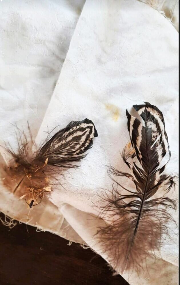 Die Lösung, über Jutta Skroch, hat Martin Kraft die Federn von einem Haushuhn bestimmt.