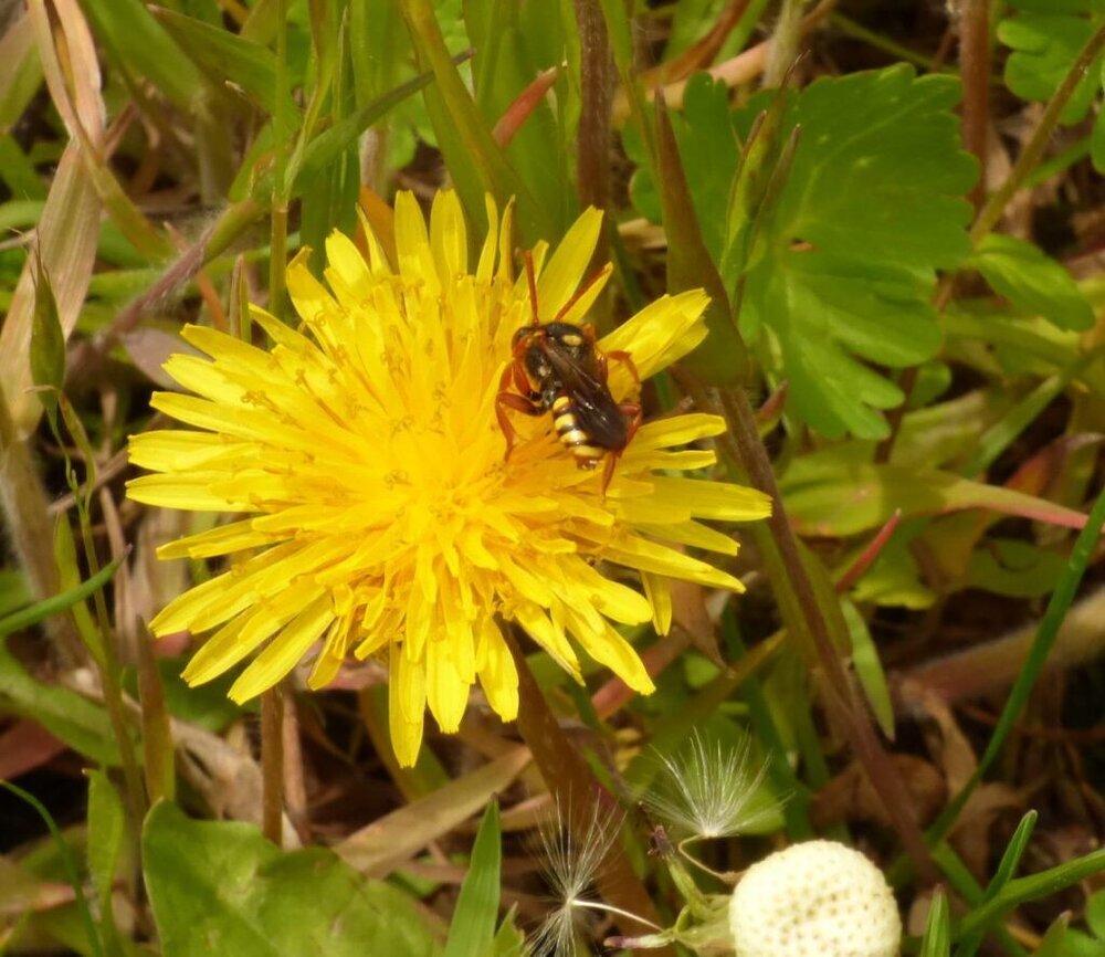 Das könnte passen, fliegt Anfang April bis Ende Mai, diese Kuckucksbiene, hatte mich noch nicht so mit beschäftigt! Diese Fotos unter Wildbienen.de, bzw. Wespenbienen Nomada fucata, sind natürlich sehr gut, gerade die letzten von 2018. Da habe ich wieder was dazu gelernt, solche Arten sind mir immer schon mal aufgefallen!
