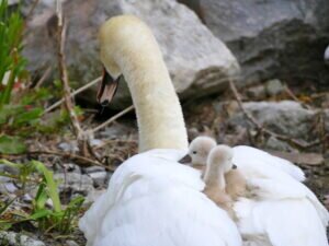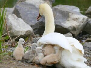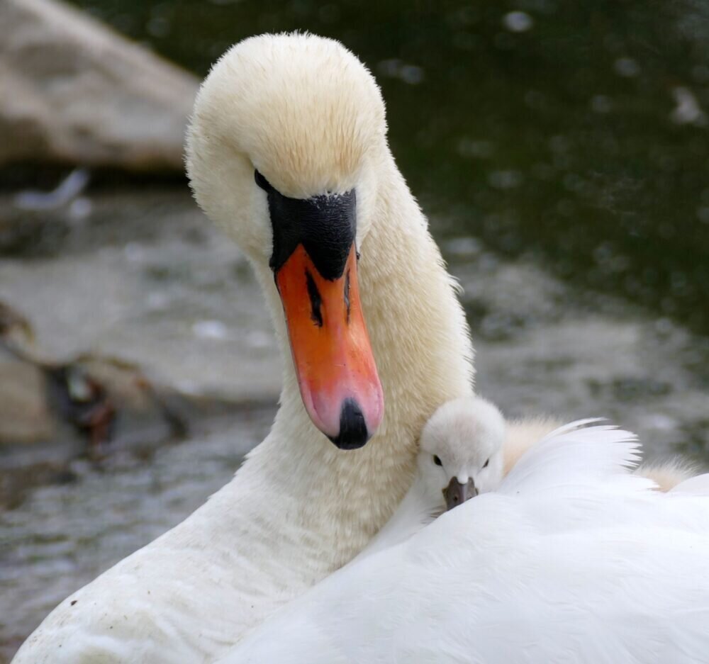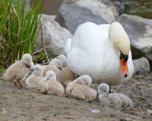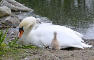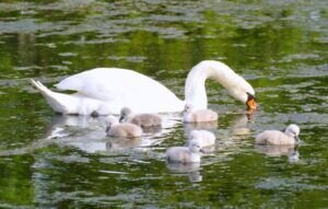 Es gibt wieder Nachwuchs bei den Wasservögeln am Schwanenteich. Die Schwäne haben 7 Küken zu versorgen. Die Ente hat 4 Küken und bei den Kanadagänsen gibt es auch Nachwuchs den ich aber nicht zählen konnte. Der Papa Schwan passt sehr gut auf und zischt alle an die zu nahe an seine Familie kommen. Selbst ein Hund an der Leine der nur trinken wollte, hat sich lieber zurückgezogen. Die Mama hatte Flügel voll zu tun um die Kleinen warm zu halten. Später waren sie dann auch auf dem Schwanenteich unterwegs um Nahrung aufzunehemen.