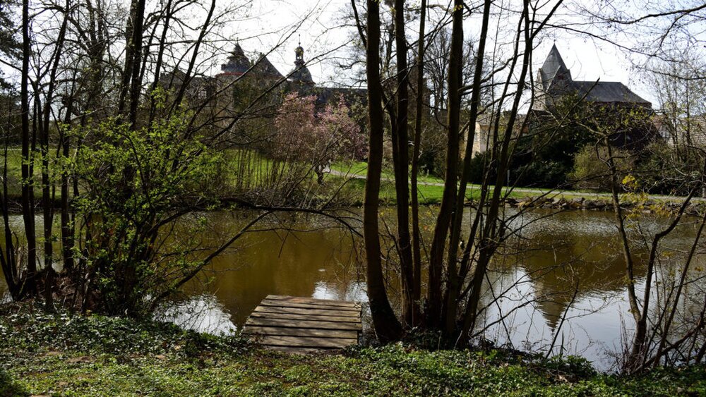 Der Schlossgarten wurde im 19.Jahrhundert stark verändert. Um 1870 wurde die “gräfliche Ökonomie” aufgelöst. Dazu gehörten auch die Ländereien unterhalb des seitherigen Schloss- oder Hofgartens, der dadurch entscheidend vergrößert wurde. So entstand das Gelände des heutigen Schlossparks. Auch der seitherige ” Obergarten”, ursprünglich ein Hofgarten im ” französischen Stil”, wurde aufgelockert und umgestaltet. Von den sieben Teichen, die der Verteidigung in diesem mauerlosen Bereich dienten, sind der Schwanen- und der Inselteich übrig geblieben.