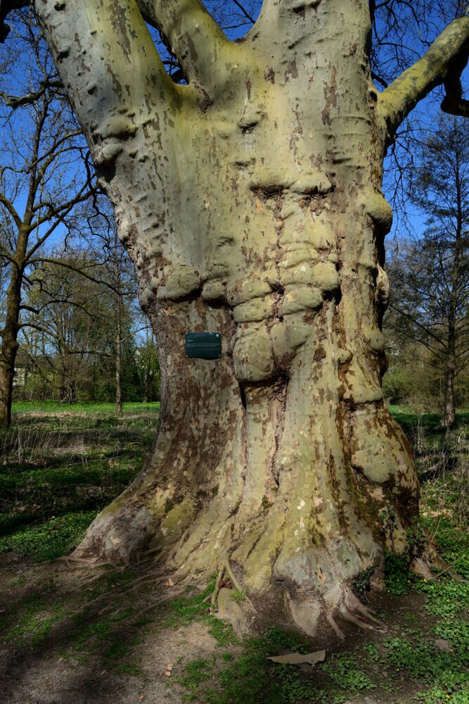 Besonders angetan war ich von dem Plantanenpaar, die rechts und links des Weges in unmittelbarer Nähe der starken Rosskastanie – unterhalb der Untermühle – stehen. Diese Baumart – ist eine >Gewöhnliche Plantane< (Plantanus x hispanica). Alter der besonderen Bäume wird auf 200 Jahre geschätzt; der Umpfang gemessen beträgt 5,98 Meter – somit 1,90 Meter Durchmesser! “sagenhaft”!