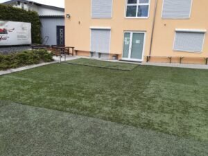Es handelt sich hierbei um hochwertigen Kunstrasen von Sportplätzen, zwar nicht neu aber von guter gebrauchter Qualität. Zusätzlich wurden 5 Sonnenschirme angeschafft um eine angenehme Trainingsatmosphäre auch bei widrigeren Bedingungen im Hochsommer zu schaffen.
