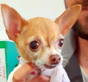 Estrella ist ein Chihuahuamädchen, Schätzalter ca. neun Jahre. Das Minihündchen hat durch Erkrankung des Frauchens und deren Umzug in ein Pflegeheim ihr Zuhause verloren.