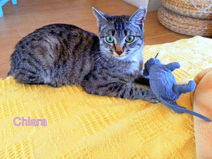 Chiara ist im Sommer 2020 geboren. Sie ist ein entzückendes Geschöpf, voller Lebensfreude und Übermut. Sie soll nicht als Einzelkatze leben. Wir vermitteln sie entweder als Gesellschaftskätzchen zu einer bereits vorhandenen Mieze oder im Doppelpack aus unserem Katzenzimmer.