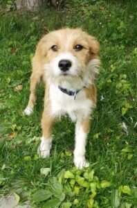 Als er ins Tierheim kam war er anfangs sehr panisch. Aus diesem Grund kam er sofort auf eine Pflegestelle. Dort hat er sich zu einem fröhlichen Junghund entwickelt. Da er aber recht schreckhaft und je nach Situation auch panisch reagieren kann, wird er nur zu einem souveränen Zweithund vermittelt.