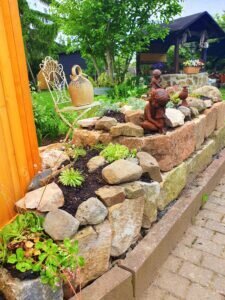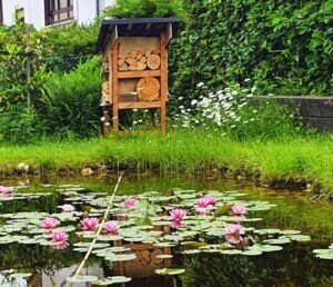 Wir haben unseren Garten an einigen Flächen umgestaltet und Pflanzen gekauft, wo unsere kleinen Krabbler sowie Bienen und Co. eine Nahrungsquelle finden.