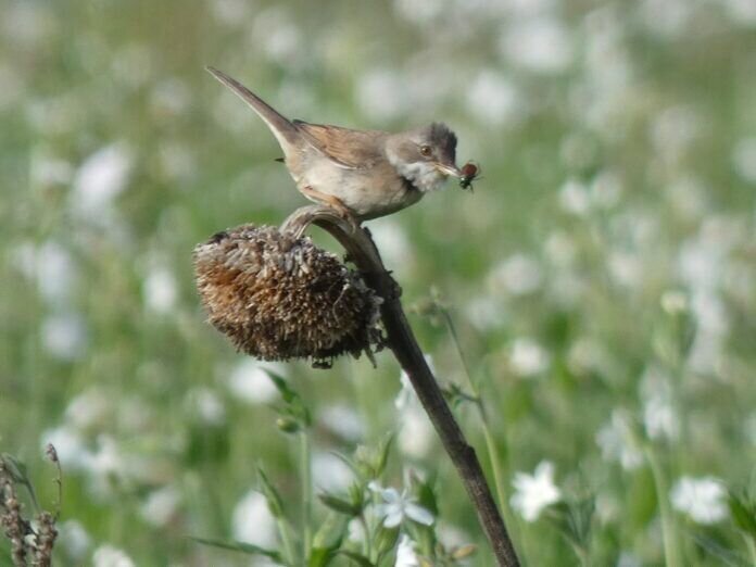Solche Grasmücken waren in diesem Frühjahr sehr aktiv, schön mit diesem Insekt erwischt. Normal bekommt man die selten so schön vor die Kamera, ich konnte vor einger Zeit auch mal eine im Gelände erwischen, die war aber weiter weg! Den hatte ich bei meiner Vogelstimmenwanderung in einem Baum bei Lohra so aufnehmen können.