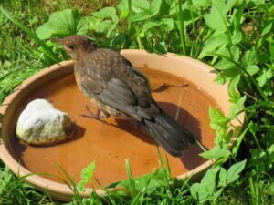 Die Milben im Gefieder werden durch das Spreitzen der Flügel und im Sonnenlicht durch das UV Licht bekämpft, solche Dinge kann man auch bei anderen Wildvögeln beobachten. Danach geht es in die Vogeltränke um das ungeliebt Ungeziefer loszuwerden. Mit solchen Grasmilben haben wir Menschen in diesem Frühjahr auch wieder unsere Mühe und Last, gegen diese juckenden Bisse der Milben! Da hilft vielfach nur das Wasser, diese Jungvögel wissen das schon und verhalten sich da schon sehr gut.