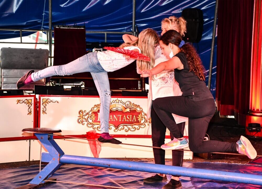 Giessen (-). Eine ganze Juni-Woche lang schmückte das große Zelt des „Circus Phantasia“ das Schulgelände der Sophie-Scholl-Schule Gießen in der Rödgener Straße. Der sogenannte „Projektzirkus“, der auf die Arbeit mit Kindern spezialisiert ist, war bereits zum zweiten Mal seit 2017 zu Besuch. „Unser Ziel ist es, dass alle Schüler*innen während ihrer Grundschulzeit einmal die Möglichkeit haben, selbst am Zirkusgeschehen teilzunehmen“, erklärt Melanie Grzimbke, Schulleitung Primarstufe.
