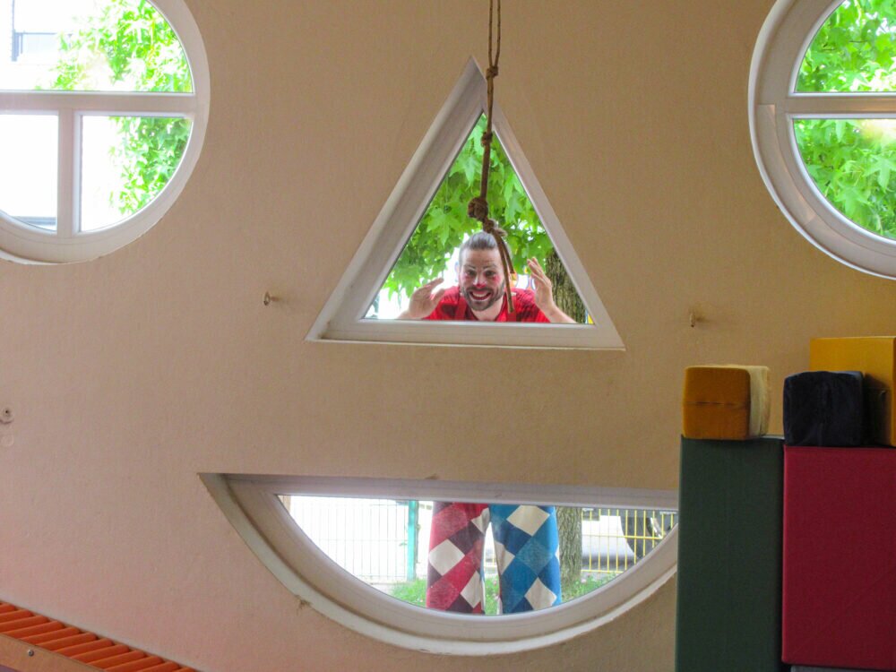 Da der Clown die Tür des Hauses zunächst scheinbar nicht fand, machte er Anstalten, durch das Fenster einzusteigen. „Aber unsere Kinder sind schlau und zeigten ihm den Eingang“, so KiFaZ-Leitung Birgit Klein augenzwinkernd.