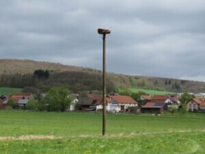 Seit nunmehr über vier Jahren steht der Storchenmast bei uns in der Nähe von Lohra-Damm. Im April 2017 wurde der Mast mit dem Nest von unserem Verein für Vogel- und Naturschutz Lohra e.V. in den Wiesen aufgestellt. In der Hoffnung, dass sich dort einmal die Weißstörche ansiedeln, sie kamen da immer schon mal aus dem Lahntal bei Fronhausen.