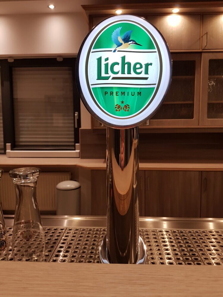 Im Anschluss daran folgte eine Umgestaltung der Duschen und der Umkleiden sowie die Planung zur Umgestaltung des Schankraums. Als der Lockdown im vergangenen Jahr den Sportbetrieb zum Erliegen brachte nutzte der TV Langsdorf die Zeit während der Pandemie um die Modernisierung des Schankraums voranzutreiben. Die alten Bodenfliesen wurden mit modernen Fliesen in Holzoptik überklebt. Wände und Decken wurden geweist und im Bereich der Theke eine Schallschutzdecke angebracht. Herzstück des Schankraumes ist die vollkommen neu gestaltete Theke, an der seit kurzem das kühle Licher Bier wieder fließen darf.