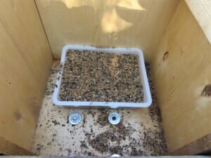Aus der roten Holzkiste kann ein Löffel Samen entnommen werden, ein voller Esslöffel reicht aus, für eine etwa zehn Quadratmeter große Fläche. Es sind davon Margeriten, Weiß- und Rotklee, Ringelblumen, Phazelien, Sonnenblumen und Fenchel auf dem Anhänger zu sehen!