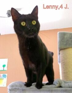 Der schwarze Lenny ist ein Lausbub. Voller Elan und Neugierde. Er war bisher auch nur in der Wohnung, zeigt aber deutlich, dass er Freigang haben möchte. Auch er ist ein verschmuster Katzenbub. Für ihn wird ein Zuhause in einer verkehrsberuhigten Gegend gesucht. Gerne als Zweitkater, denn er ist Katzengesellschaft gewohnt und freundlich mit Artgenossen.