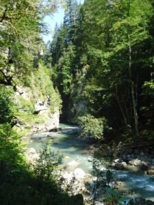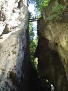 Seit Beginn der Corona-Pandemie kann die Klamm nur im “Einbahnverkehr” von Tiefenbach zur Walserschanz begangen werden. Über einen Wanderweg mit diversen Einkehrmöglichkeiten, der auch über den Zwingsteg hoch über der Schlucht führt, kommt man ohne große Anstrengung wieder zurück zum Eingang der Klamm.