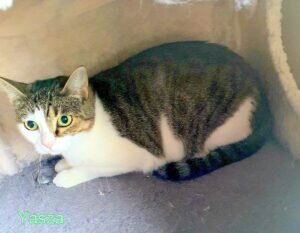 Yasza beäugt die Zweibeiner noch mißtrauisch, taut aber von Tag zu Tag mehr auf. Sie hat als ehemalige Strassenkatze die Menschen nicht immer als Freunde kennen gelernt. Die Überlebensstrategie von spanischen Strassenkatzen ist größte Vorsicht. Sehr jung hat sie ihre ersten Kinder bekommen, von denen noch zwei Kitten ebenfalls auf eine Familie warten. Wir suchen für Yasza geduldige Menschen, die ihr behutsam zeigen, wie schön ein betreutes und behütetes Leben sein kann.