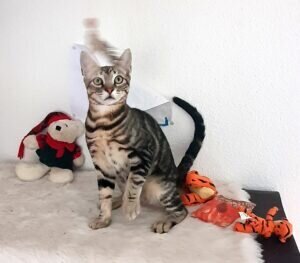 Der S Wurf gleicht sich in der Farbe sehr. Auf der Pflegestelle in Giessen sind die Katerchen, alle grau getigert in geringen Farbenuancen! Nur Siambruder Siro fällt “aus der Rolle”! Vielleicht hat er sich ja auch als mutterloses Kitten zu der Mama und ihrem Wurf gemogelt. Wir wissen es nicht, denn unsere spanischen Tierschutzfreunde haben die Katzenfamilie in Obhut genommen. Die Kitten sind mit aller Sorgfalt und Liebe aufgezogen worden. Sie haben sich prächtig entwickelt und sind Schmusetiger geworden.