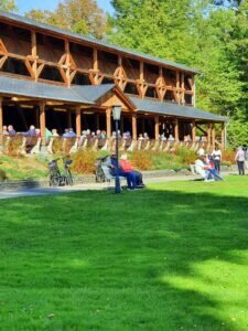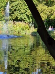 Der gestrige Sonntag verwöhnte uns noch einmal mit herrlichem Sonnenschein und sommerlicher Temperaturen! Wir besuchten zunächst Bad Salzhausen mit seinem wunderschönen Park. Alte Bäume sind immer eine Augenweide und laden zum Verweilen ein. Wenn diese Riesen sprechen könnten, sie hätte viel zu erzählen. Sie zu berühren, gibt mir ein angenehmes Gefühl. Der Park hat Bäche und Seen. Auch Wasser ist beruhigend! Das uralte Wasserrad verichtet noch immer unermüdlich seine Arbeit. Das alte Holz gab “klagende” Laute von sich, gemischt mit dem plätschernden Wasser! Es waren angenehme Töne.