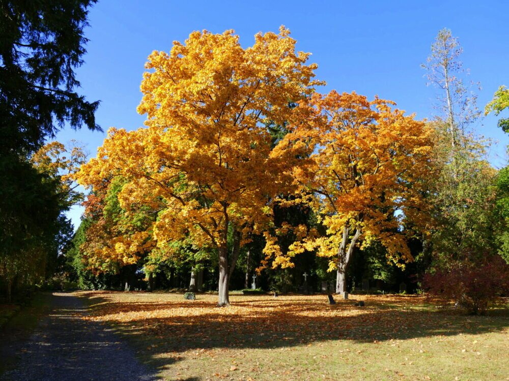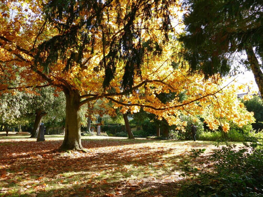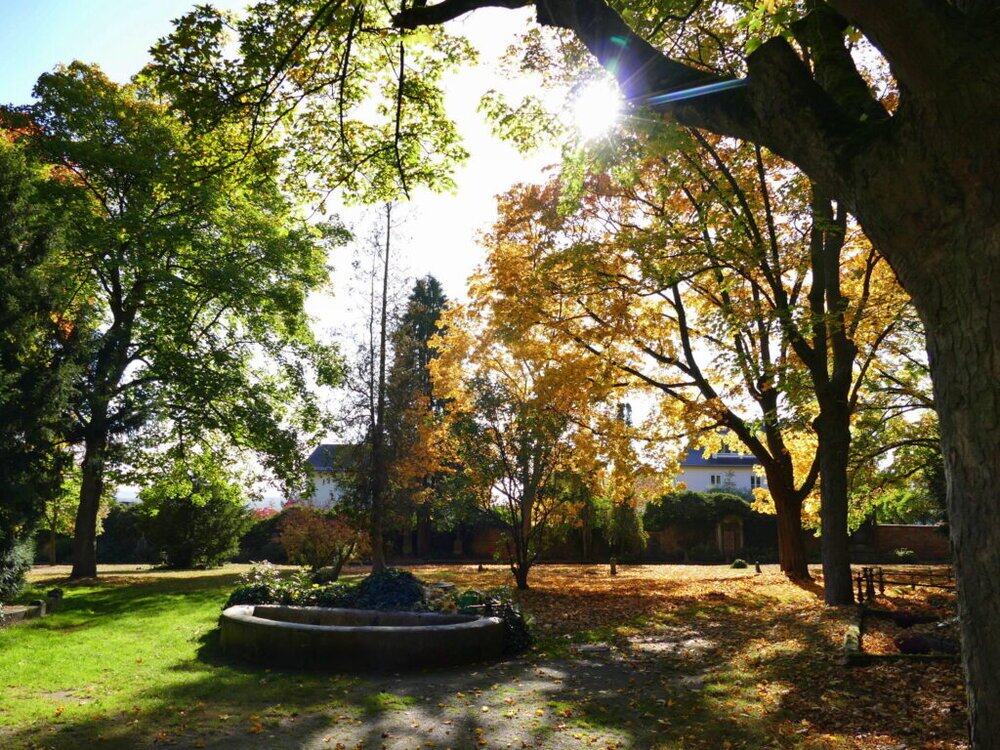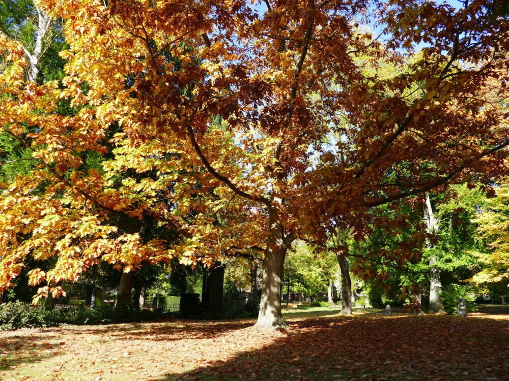 Der “goldene Oktober ” macht seinem Namen im Park vom Alten Friedhof in Gießen alle Ehre. Die Blätter vieler Bäume leuchten in der Herbstsonne. Die Eichhörnchen haben meine Haselnüsse augesammelt, die mir freundlicher Weise ein Pärchen überlassen hat. Sie sind sehr zutraulich und kamen direkt auf die Bank neben meinen Mann und holten sich die Nüsschen. Der Alte Friedhofof ist ein schöner Park mit seinen alten großen Bäumen. Viele Vögel haben hier auch eine schöne Heimat gefunden. Es ist zu jeder Jahreszeit sehr schön hier.