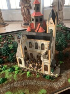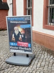 Eigentlich sollte die Playmobil-Ausstellung im Kloster Eberbach Ende Oktober geschlossen werden, nun wurde sie bis zum 21.11.21 verlängert. Der Besucher-Andrang ist groß. Besonders beliebt ist diese Ausstellung, die mit Playmobilfiguren das Leben im und rund um das Kloster darstellt, bei Familien mit kleinen Kindern. Es lohnt sich also nicht nur, die historischen Gebäude zu besichtigen, in denen der Film „Der Name der Rose“ gedreht wurde. Darüber hinaus kann man viele Details in den phantasievoll gestalteten Playmobil-Landschaften entdecken. Geschaffen wurden die Schaulandschaften vom Diorama-Künstler Oliver Schaffer, der über 5000 Figuren und über 50.000 Einzelteile verbaut hat. Beim Rundgang besichtigt man unter anderem den Kreuzgang, die Basilika (Klosterkirche), das Mönchsrefrektorium, den Cabinetkeller, das Mönchsdormitorium, das Laienrefektorium und das Abteimuseum.