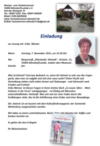 Einladung zu einer Lesung am 07. November von Frau Weimer Von Heimat- und Verkehrsverein Allendorf (Lumda) - 2. November 2021 130