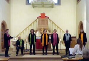 Da auch der Gospelchor „Gospel and more“ seinen 15. Geburtstag feierte war es diesem vorbehalten, den Gottesdienst im Kirchenschiff musikalisch mitzugestalten. Mit Chorleiterin Adele Franz und Nina Schäfer (Querflöte) sangen sie in wechselnden Phasen des Gottesdienstes „Well I´m Gonna Sing“, I´ve Got a Feeling“ „Look Away“ und „Shine Your Light“ zur Freude der Besucher.