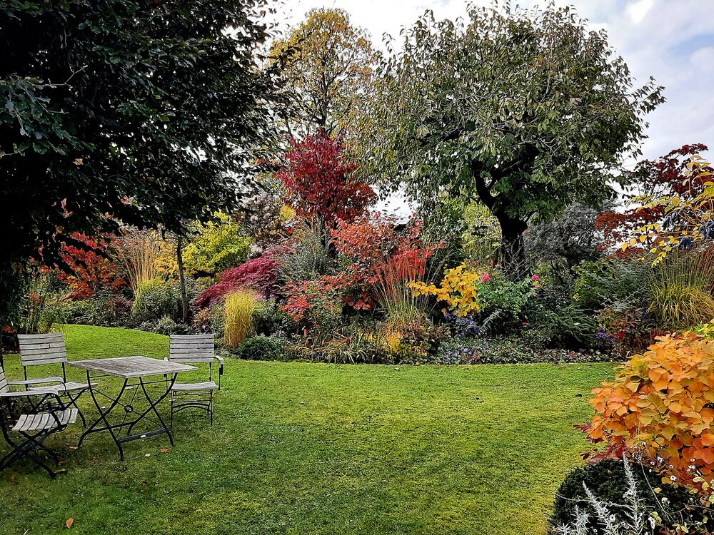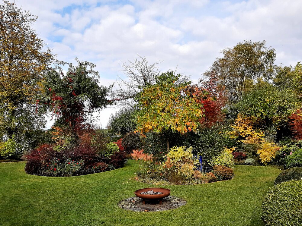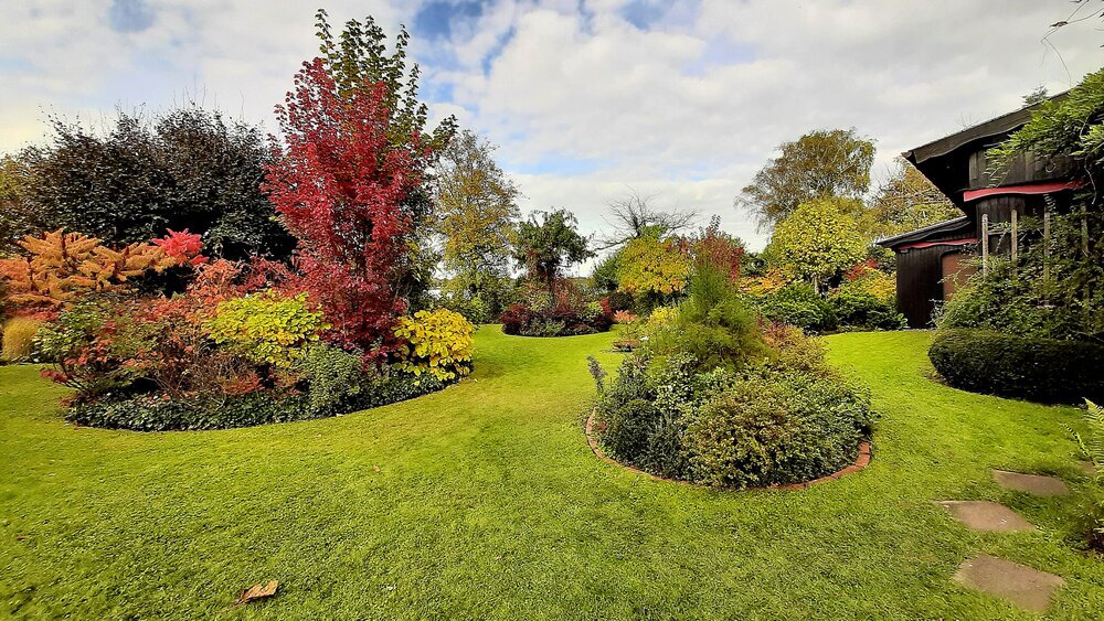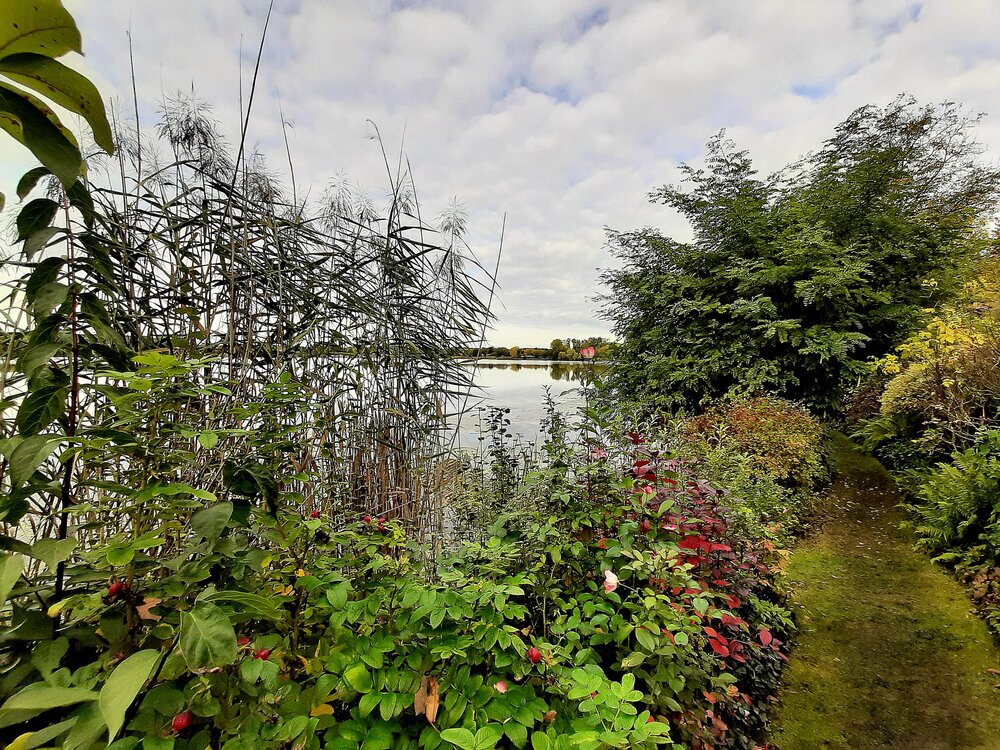 Als wir aus der Tageszeitung erfuhren, dass zum Wochende des 16. und 17. Oktober ein Parkgarten seine Pforten für Besucher öffnet, stand für uns als Gartenfreunde fest, diesen zu besuchen. Das uns so ein buntes Farbenspiel erwartet, hätten wir im Geringsten nicht erwartet! Eine freundliche Begrüßung vom Besitzer des Parkgartens am See – Dr. Jobst Biester, ließ nicht lange auf sich warten und auf Fragen der Besucher gab der Hobbygärtner sofort fachkundig Auskunft. Er ließ auch verlauten, dass ER sein Garten ganz besonders für die zahlreichen Besucher `auf Vordermann`gebracht und Rasenwege und Plätze frisch gemäht hat.