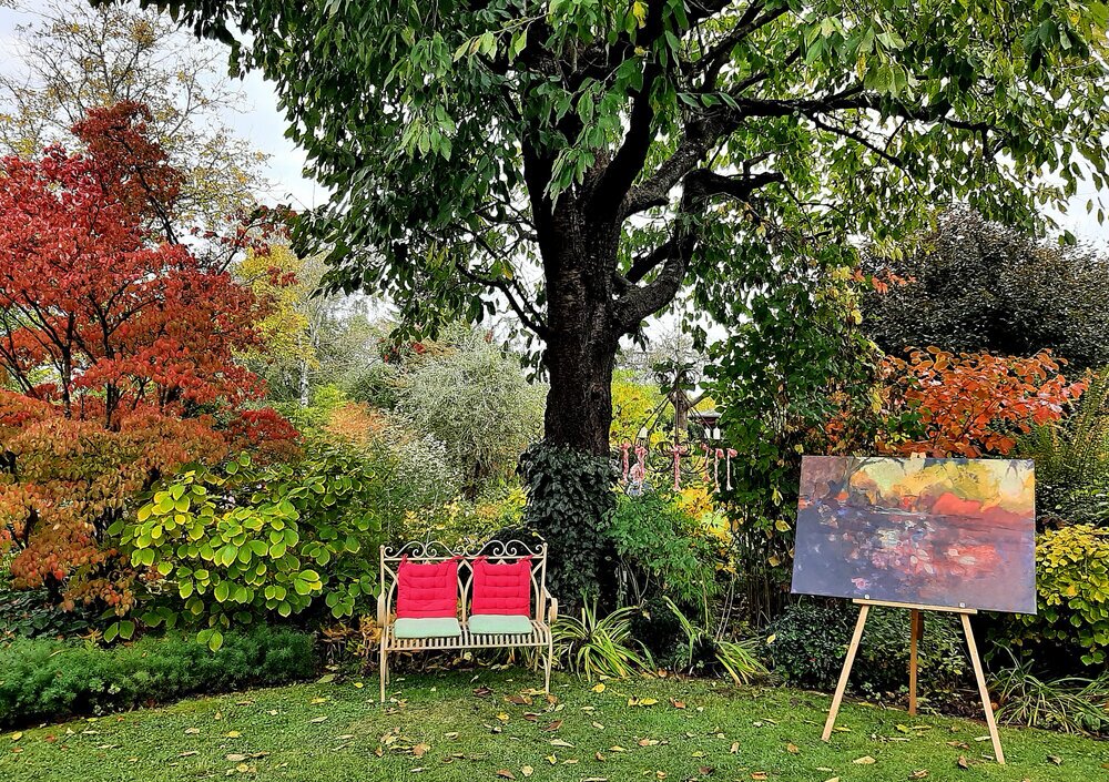 “Es soll keine Werbung sein”: Diesen Künstlergarten mit wunderschön ausgestellten Gemälden im Freien auf Staffagen und einem offenen Ausstellungsraum ist wirklich empfehlenswert! Herr Biester öffnet seinen – am iddyllischen Horrloff-See gelegenen Parkgarten – zu den Jahreszeiten und lädt ganz persönlich zu seiner >>Offenen Gartenpforte<< ein. Mein Tipp: Die nächste Besichtigung wird zum Februar `22 möglich sein, denn im frostigen Winter beginnt die Blüte der Zaubernuss-Sträucher. Interessierte können es aus der Tageszeitung entnehmen.