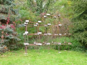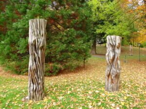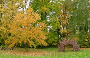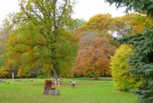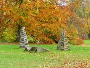 Im Oberen Kurpark von Bad Salzhausen findet man nicht nur botanische Kostbarkeiten. Vom Bildhauersymposium, welches von 2007 bis 2015 alle zwei Jahre im Wechsel mit der Werkschau stattfand, zeugen die zahlreichen Kunstwerke auf den Wiesenflächen im oberen Kurpark. Das Ziel des am 22. Februar 2006 gegründeten Vereins Kunst:Projekt e.V. ist es, auch in ländlichen Strukturen einer kleinen Gemeinde wie Nidda dem bestehenden Bedürfnis von Kunstinteressierten nach einem Forum der zeitgenössischen Kunst, einen Namen und Platz zu geben. Er will einem breitem Publikum Kunst nahe bringen, Sprachrohr und Diskussionsgrundlage für künstlerische Aktivitäten und Aktionen sein. Jetzt im Herbst gab es ein herrliches Farbenspiel der bunten Bäume.