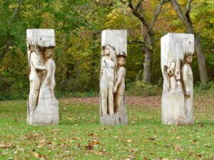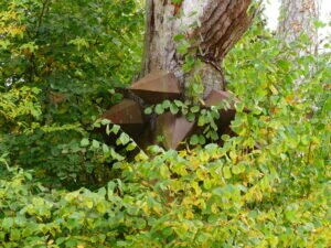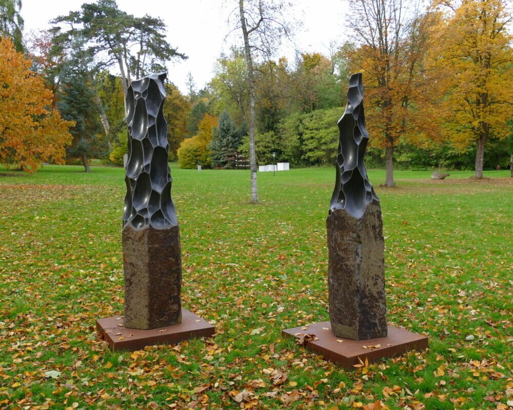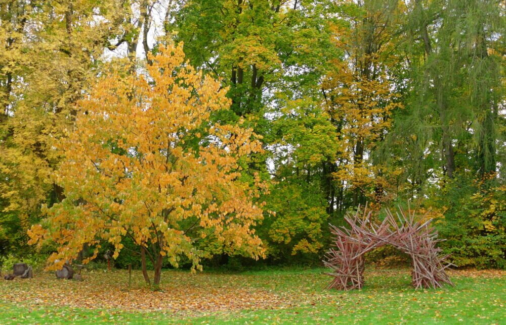 Im Oberen Kurpark von Bad Salzhausen findet man nicht nur botanische Kostbarkeiten. Vom Bildhauersymposium, welches von 2007 bis 2015 alle zwei Jahre im Wechsel mit der Werkschau stattfand, zeugen die zahlreichen Kunstwerke auf den Wiesenflächen im oberen Kurpark. Das Ziel des am 22. Februar 2006 gegründeten Vereins Kunst:Projekt e.V. ist es, auch in ländlichen Strukturen einer kleinen Gemeinde wie Nidda dem bestehenden Bedürfnis von Kunstinteressierten nach einem Forum der zeitgenössischen Kunst, einen Namen und Platz zu geben. Er will einem breitem Publikum Kunst nahe bringen, Sprachrohr und Diskussionsgrundlage für künstlerische Aktivitäten und Aktionen sein. Jetzt im Herbst gab es ein herrliches Farbenspiel der bunten Bäume.