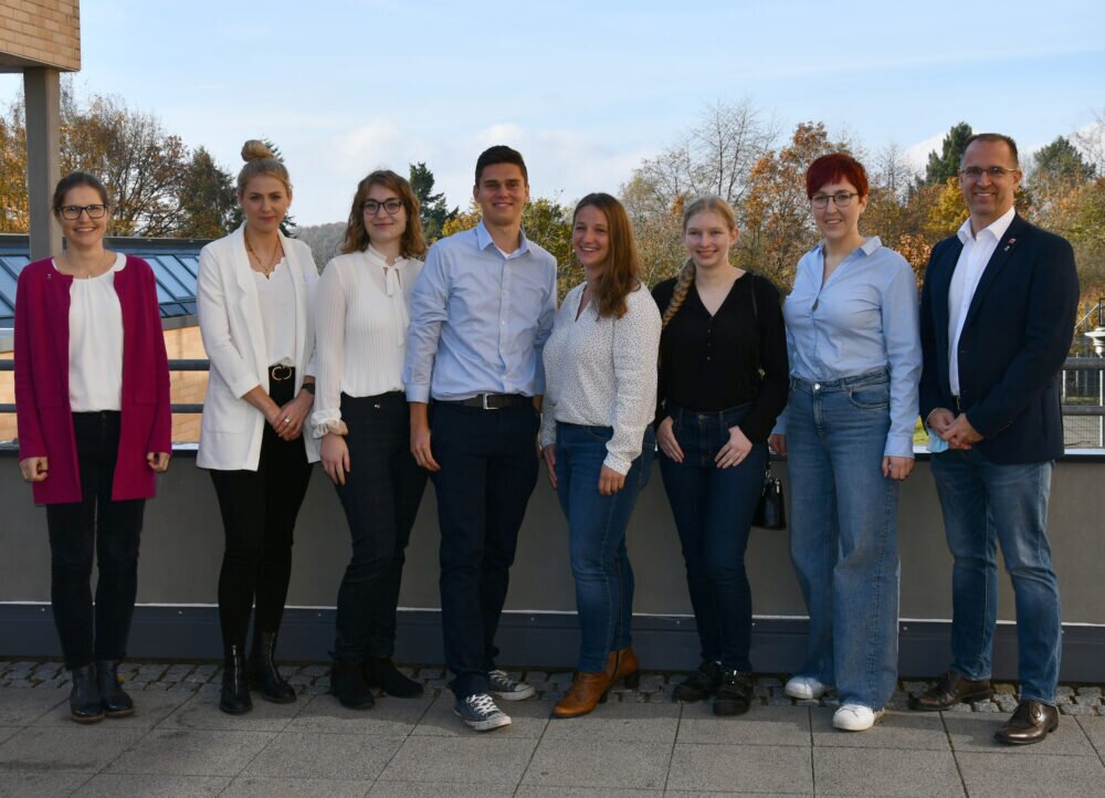 Neuer Landesjugendvorstand (von links nach rechts): Linnéa Sundström, Selina Schmittinger (Landesjugendbüro), Frauke Schneider, Eric Stumpf, Meike Mathes, Sonja Franzke, Ayla Sattler, Jens Hunsche (Fotografin: Rieke Krause)