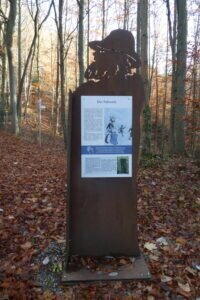 Wald gehabt. Der Sachsenstein, auch Jägerstein, ist ein Denkmal am Berg Pleß, welches1722 im Wald errichtet wurde, da an dieser Stelle ein junger Jäger zu Tode kam. Der Abstieg erfolgte über Wurzeln ins Tal des Polsambachs bis Langendorf. Nach 20 km schritten die Pilger durch das Tor zum Hochrhöner, das Ziel Bad Salzungen war erreicht. Ein edler Spender lud die Pilger noch zu leckerem Kuchen und Kaffee ein.
