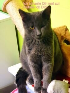 Kartäusermischling Toto und seine hübsche Schwester Mia sind ein halbes Jahr alt. Wir suchen für die verspielten Katzenteenager ein Zuhause, gerne mit Kindern! Die lustigen und lebhaften Miezen brauchen Beschäftigung und Streicheleinheiten. Sie können in reiner Haushaltung leben. Ein gesicherter Balkon erhöht die Lebensqualität.