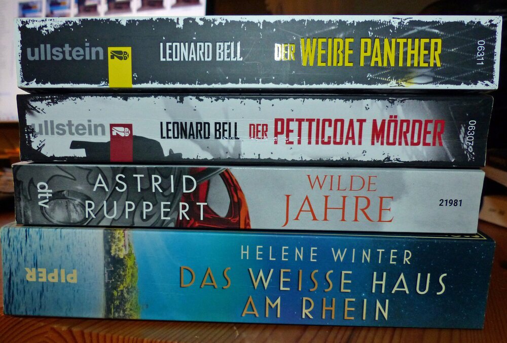 „Der Petticoat-Mörder“ und „Der weiße Panther“ von Leonard Bell. – 2 sehr gute Krimis, die 1958 in Berlin spielen. Der junge Fred Lemke tritt seine Stelle als Kriminalassistent in der Mordkommission des LKA an. Gleich am 1. Tag wird er mit einem Todesfall konfrontiert. Am Fennsee wurde ein Man mit mehreren Schüssen getötet. Bei seinen Nachforschungen wird er unterstützt von „Sonderermittlerin“ Ellen von Stain, eine Dame mit undurchsichtigem Status. Scheinbar kann sie sich alles erlauben, während ihn Vorgesetzte mit noch viel braunem Gedankengut an der kurzen Leine halten wollen. Man lässt ihn beispielsweise nicht in der Nazi-Vergangenheit des Getöteten recherchieren.