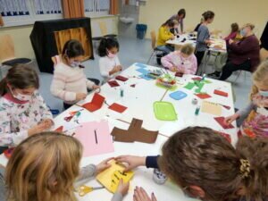 Das Team vom Pohlheimer Kinder- und Jugendbüro hatte zum Adventbasteln in die „Admonter-Stuben“ nach Garbenteich eingeladen und 19 Kinder im Alter von 6 bis 11 Jahren haben mit großer Begeisterung die ersten Plätzchen gebacken, Weihnachtskarten gestaltet und bunte Pompoms gebastelt.
