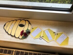 „Wem gilt denn nun unsere Aufmerksamkeit?“, so fragten sich die Kinder zunächst. Manche stellten sich einen guten Herrscher vor, der sich um seine Untertanen kümmert. So stand zunächst der Mensch – oder, wie es im Neuen Testament heißt, der Nächste – im Fokus. Kinder unterstützten bei der Ausgabe an Bedürftige die Tafeln in zwei Kreiskommunen oder suchten Alternativen für Konsumartikel, damit die Vorräte auf dieser Erde länger geschont werden. Mit dem Umstieg auf Bambuszahnbürsten (statt mit Griffen aus Plastik) und fester Seife (geringerer Transportaufwand) konnten Einzelne in ihrem Umfeld sogar Überzeugungsarbeit leisten und Nachahmer finden. Jana und Kati bastelten Flyer, um mit Leuten über die Umwelt und das Verhältnis zur Schöpfung ins Gespräch zu kommen.