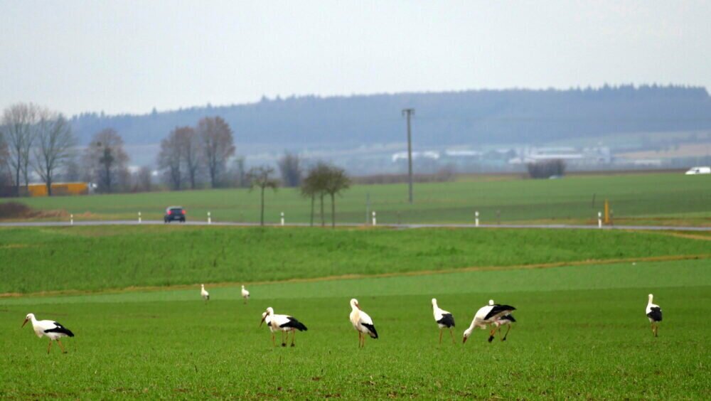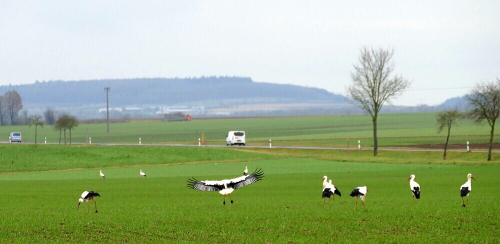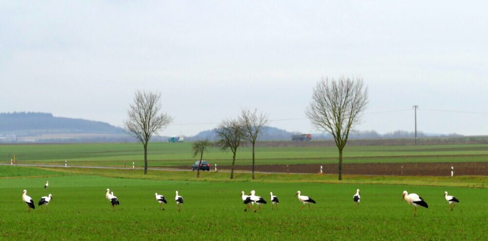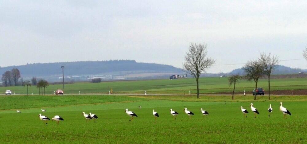 Gestern traute ich meinen Augen nicht als ich 16 Störche direkt an B455 in Richtung Bad Salzhausen zählen konnte. Sie kommen sicher von der Mittleren Horloffaue bei Hungen unweit von der anderen Seite der Straße. Sie überwintern hier bei uns.