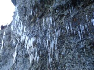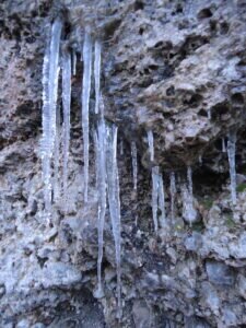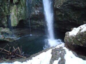 Viel Schnee hatte es ja nicht im Wald um den Wasserfall und auch die Eiszapfen waren noch zierlich. Aber es war ziemlich frisch und man mußte höllisch achtgeben, um nicht bergabzurutschen.