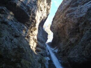 Mit den Niagarafällen oder auch bekannten Wasserfällen in den österreichischen Bergen läßt sich der Hinanger Wasserfall natürlich nicht vergleichen. Dennoch ist er mit seiner langen, leicht schrägen Fallstrecke einmalig. Und unwillkürlich kommt einem der Song von den Bots in den Sinn: “Weiches Wasser bricht den Stein”.